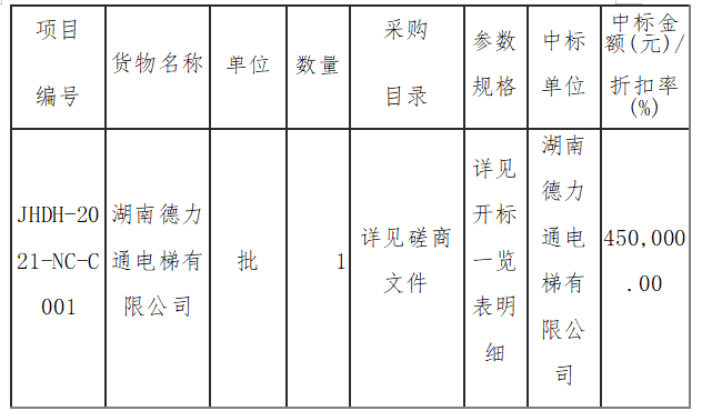 江西君汇道合工程项目管理有限公司关于国信医药谷地下负一层商超项目(步步高超市)电梯采购项目结果公示